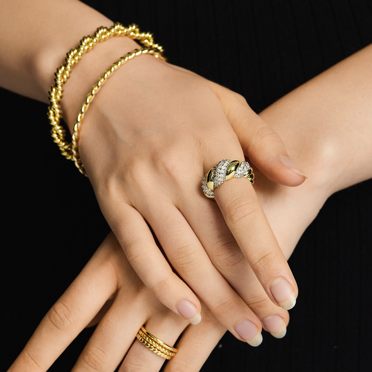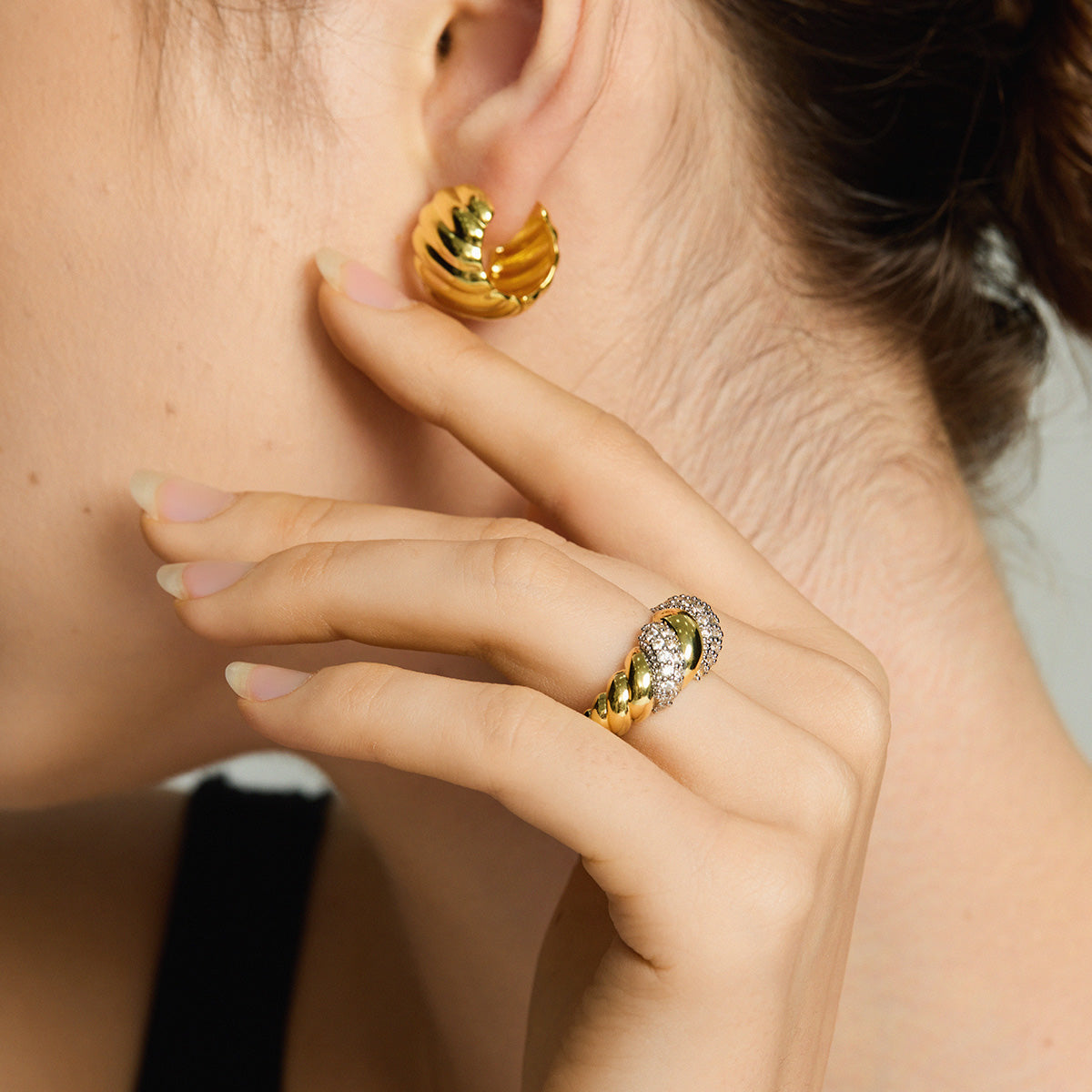Materials:18K Gold on Brass, Cubic Zirconia Width:10mm-0.39" Weight:10.5g Crafted In:China |