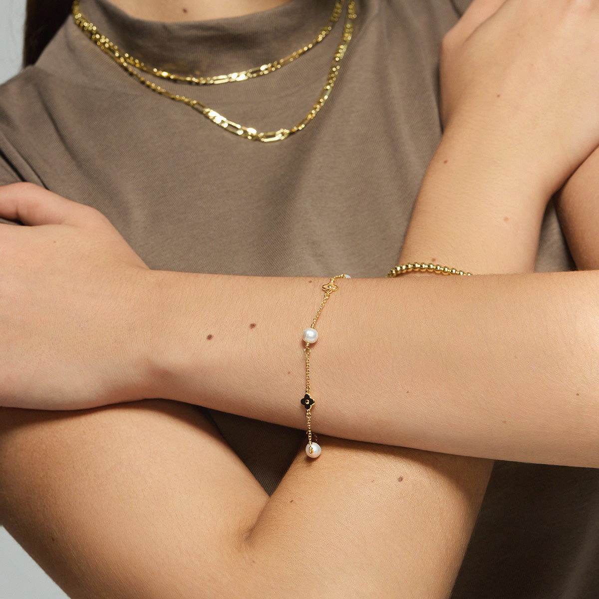 Materials:18K Gold on Brass,Freshwater Pearls Length:18.5cm-7.2"+5cm-1.9" Weight:4g Clasp:Lobster Clasp Crafted In:China |