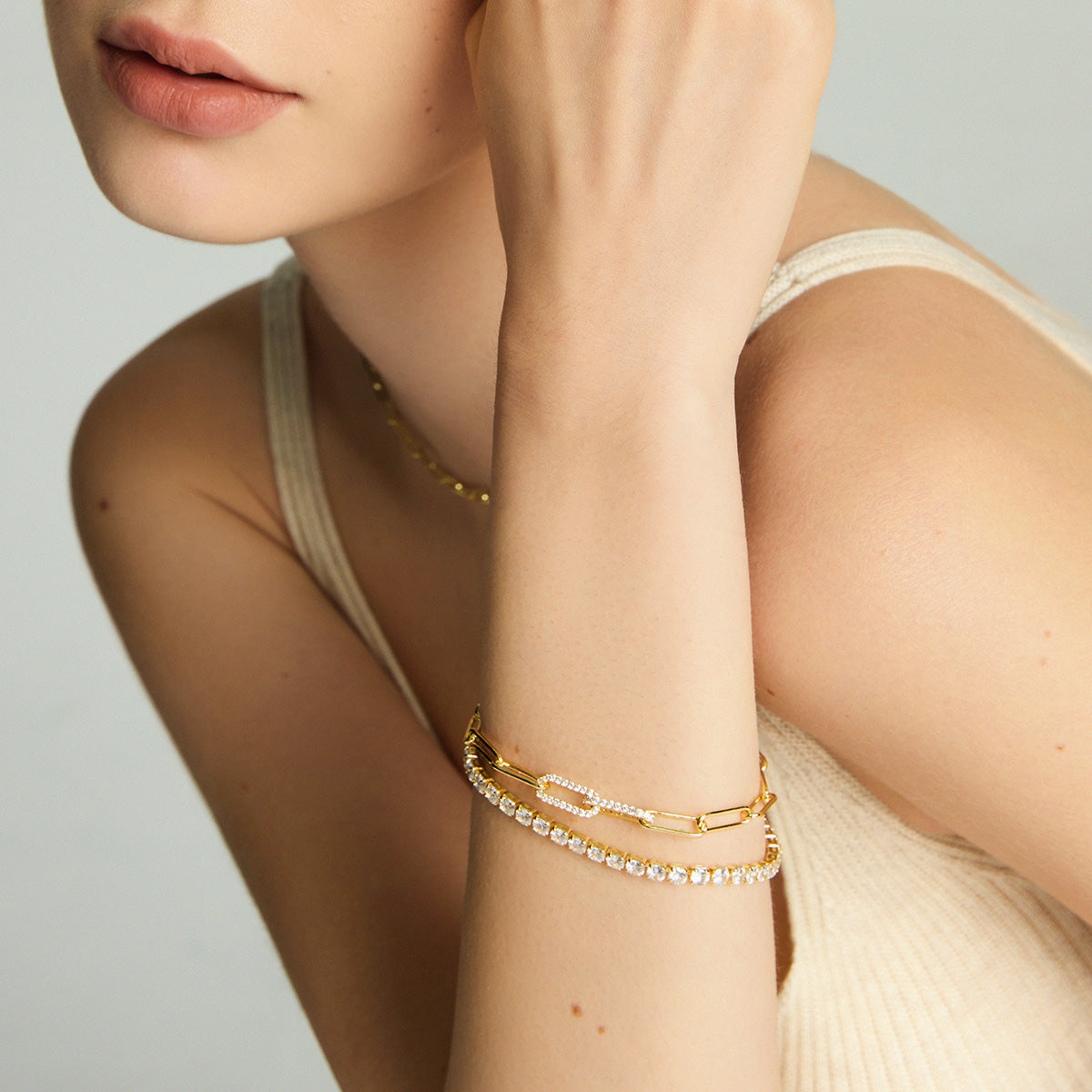 Materials:18K Gold on Brass, Cubic Zirconia |