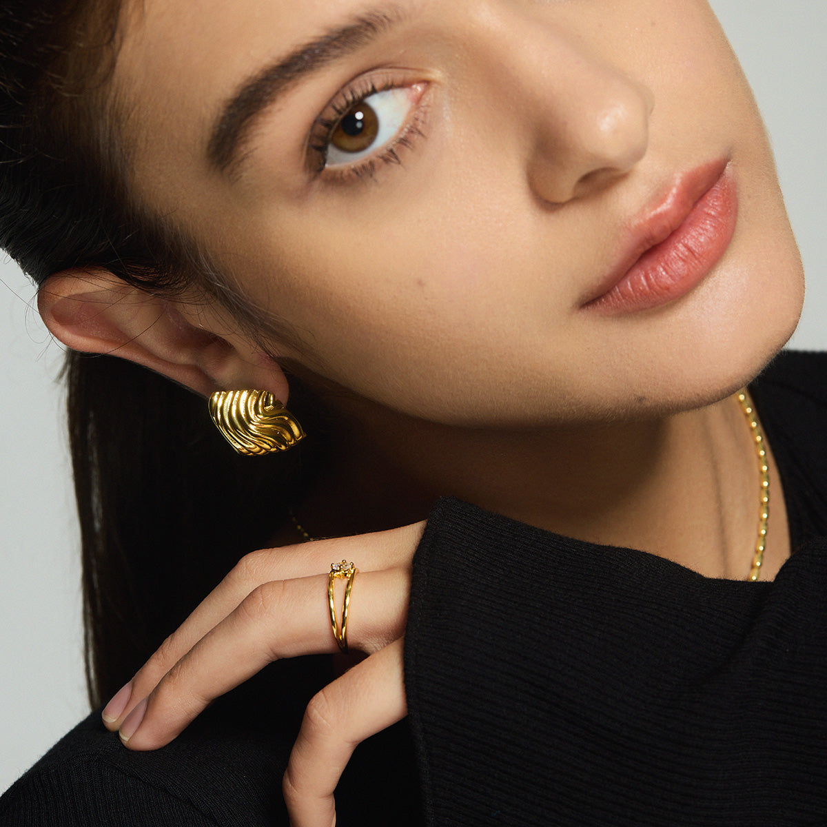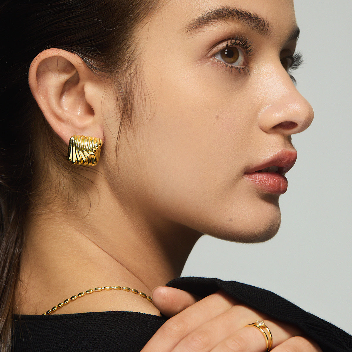 Materials:18K Gold on Brass Length:20mm-0.78" Width:20mm-0.78" Weight:12.5g Post:Stainless Steel Crafted In:China |